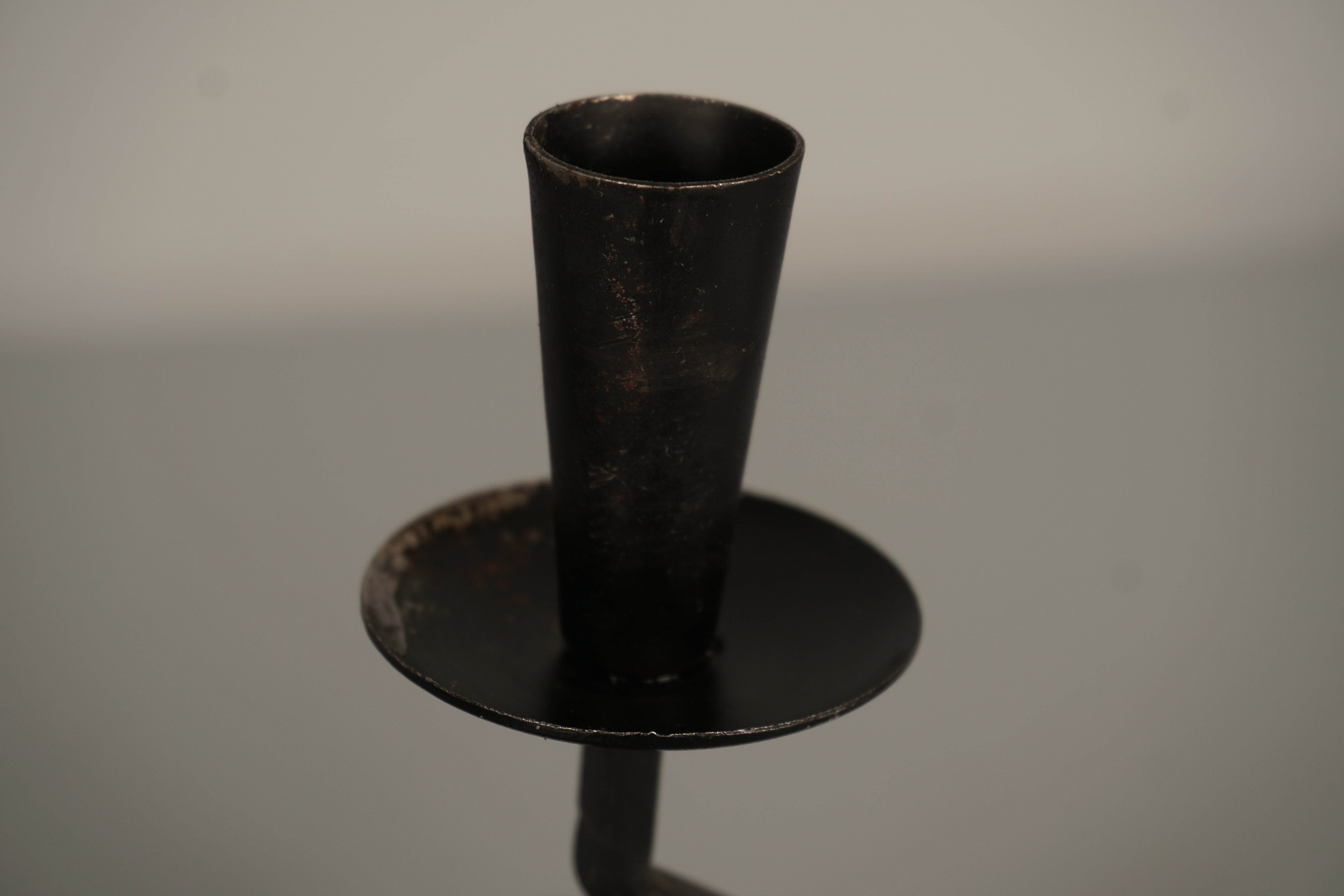 A stunning candle holder by Gunnar Ander, embodying the Scandinavian design of the 1960s. Made from black wrought iron and red glass, this holder offers an elegant blend of materials and colors.