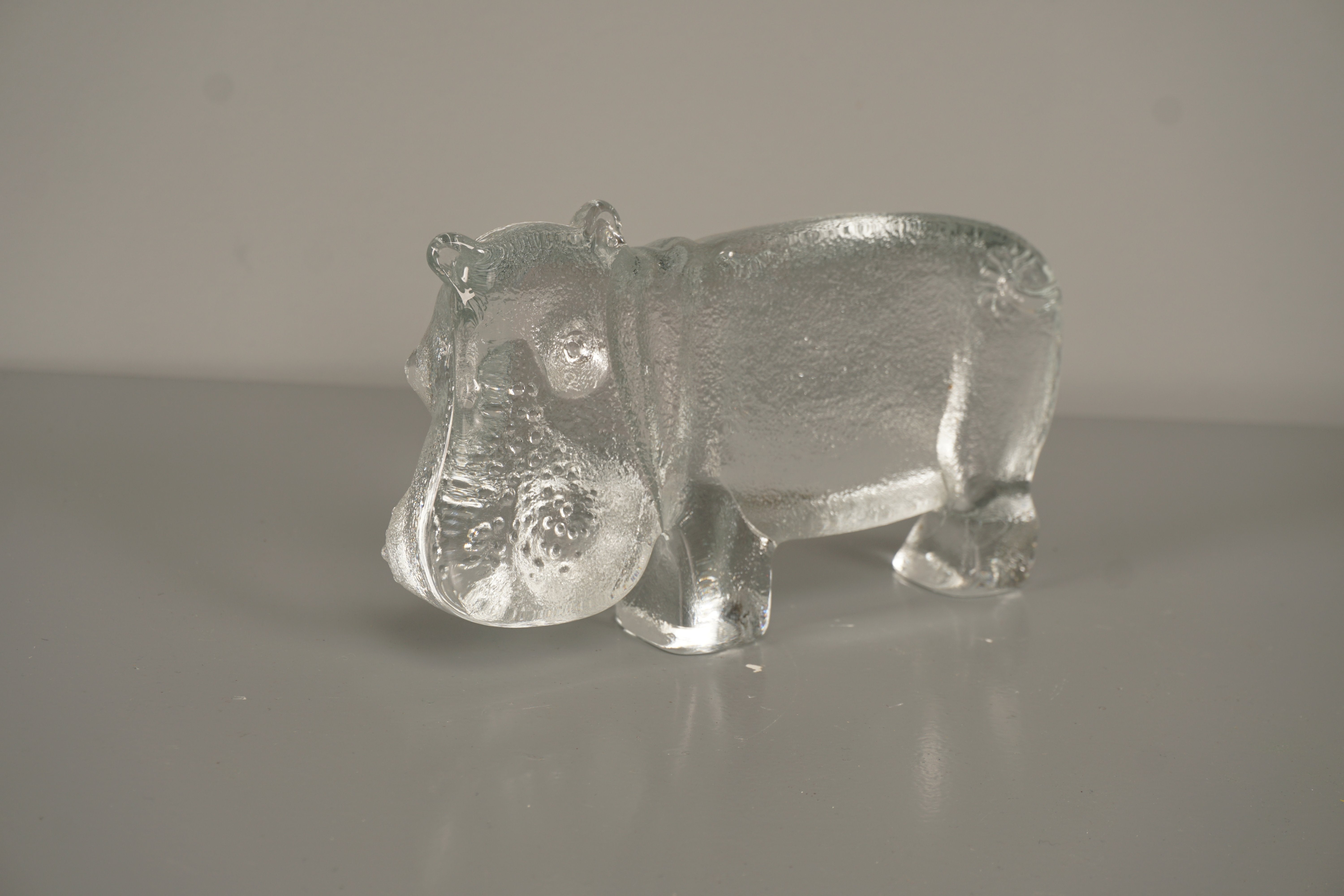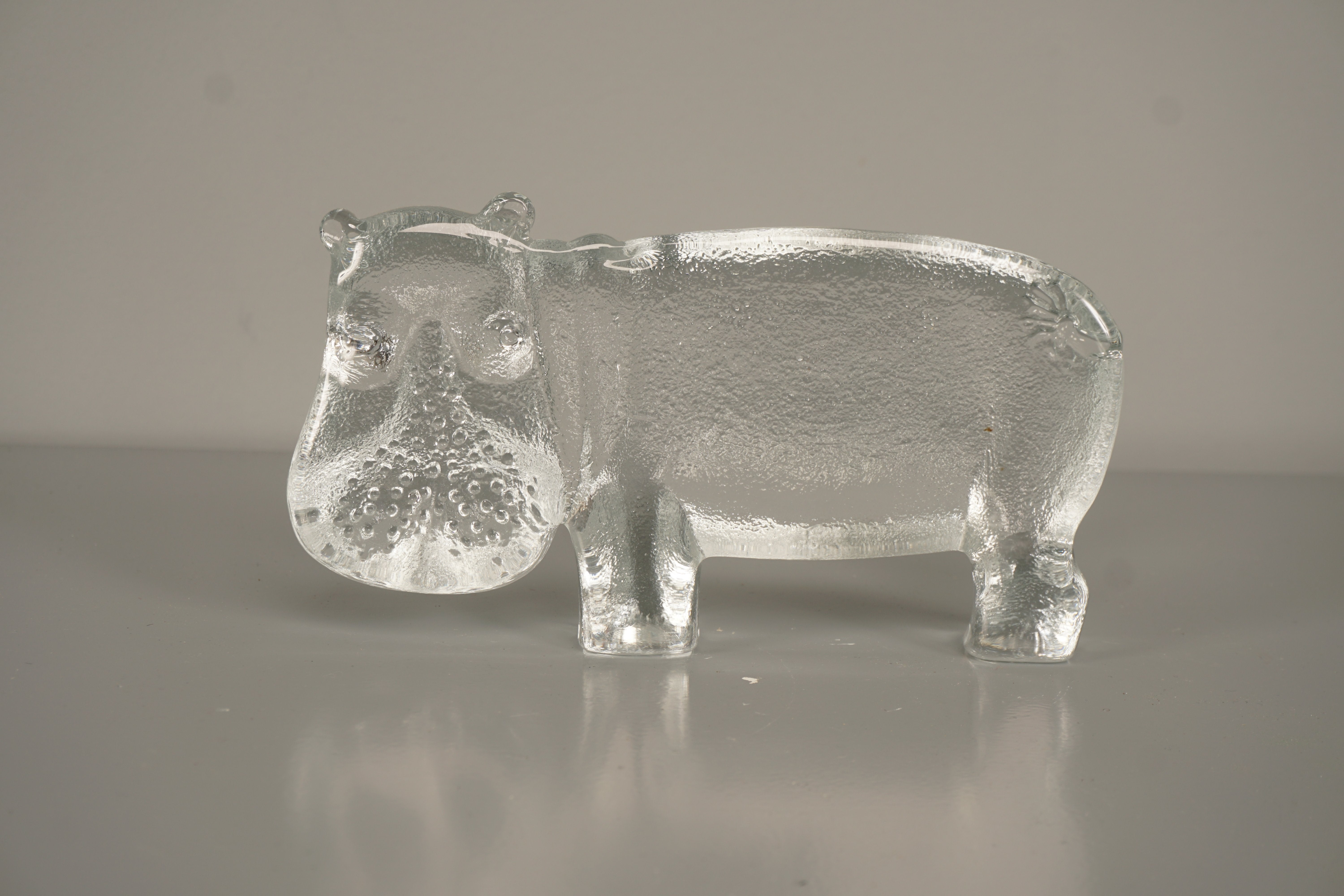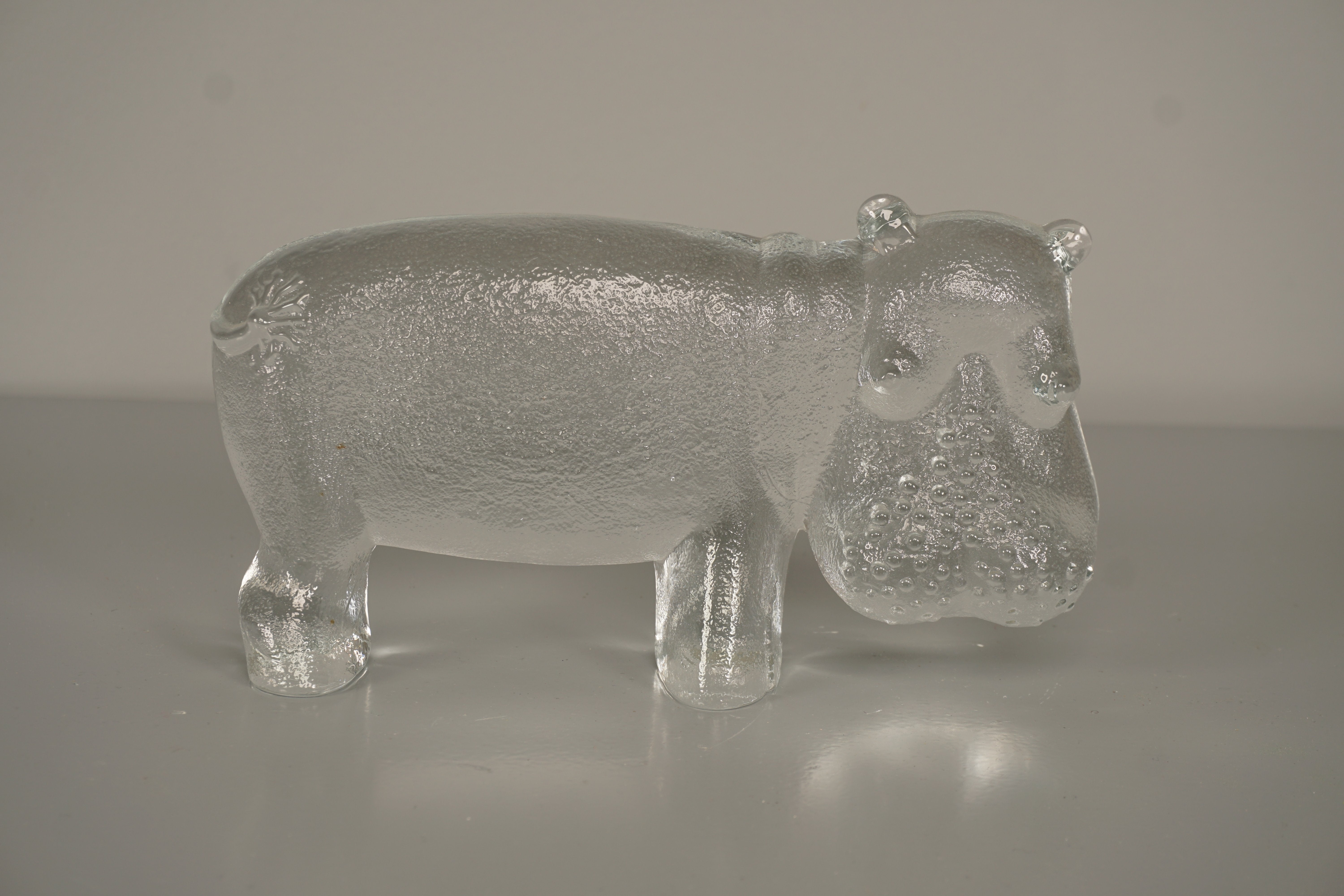 Kosta Boda Bertil Vallien Decorative Sculpture Zoo Series Hippopotamus 70s Clear Glass