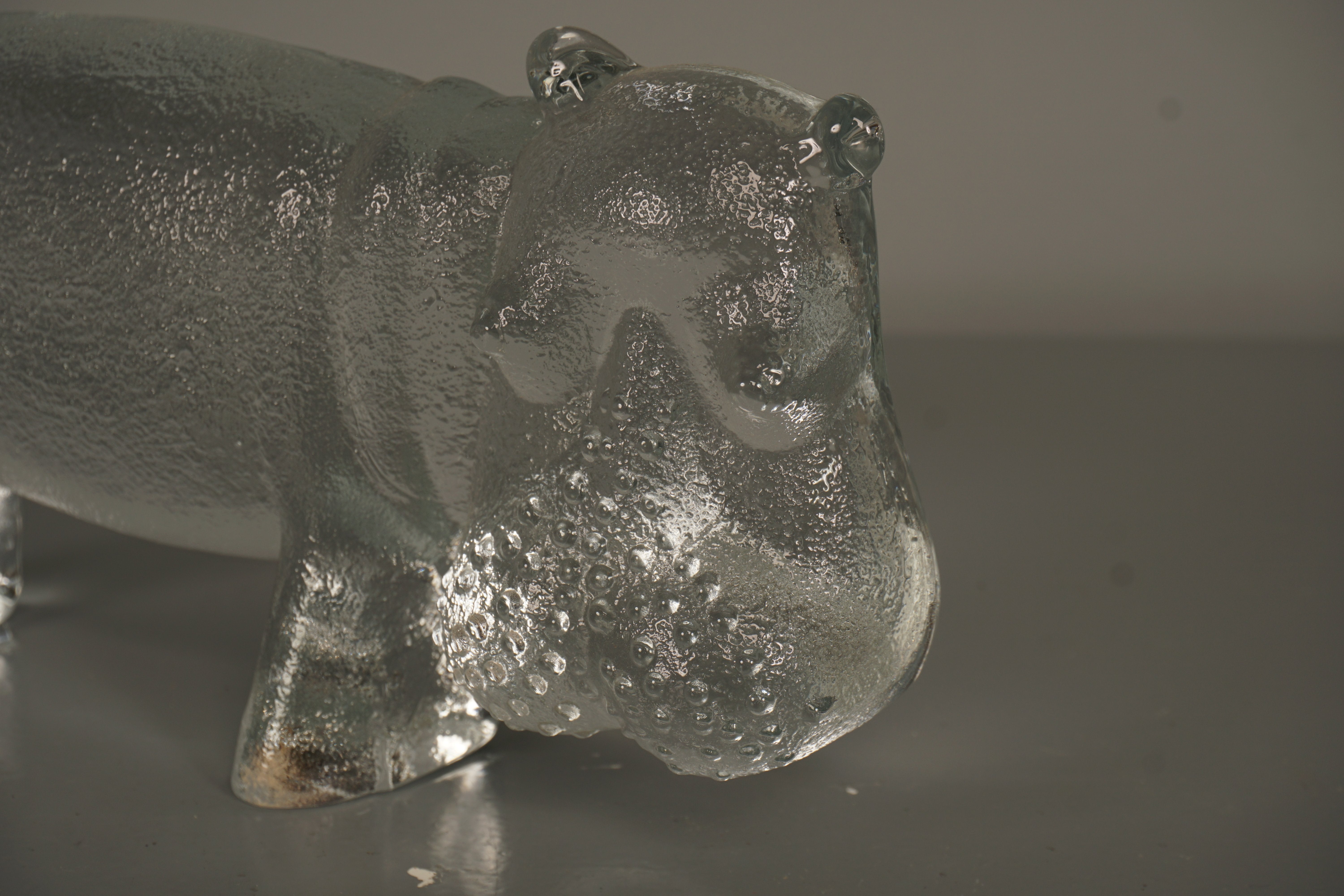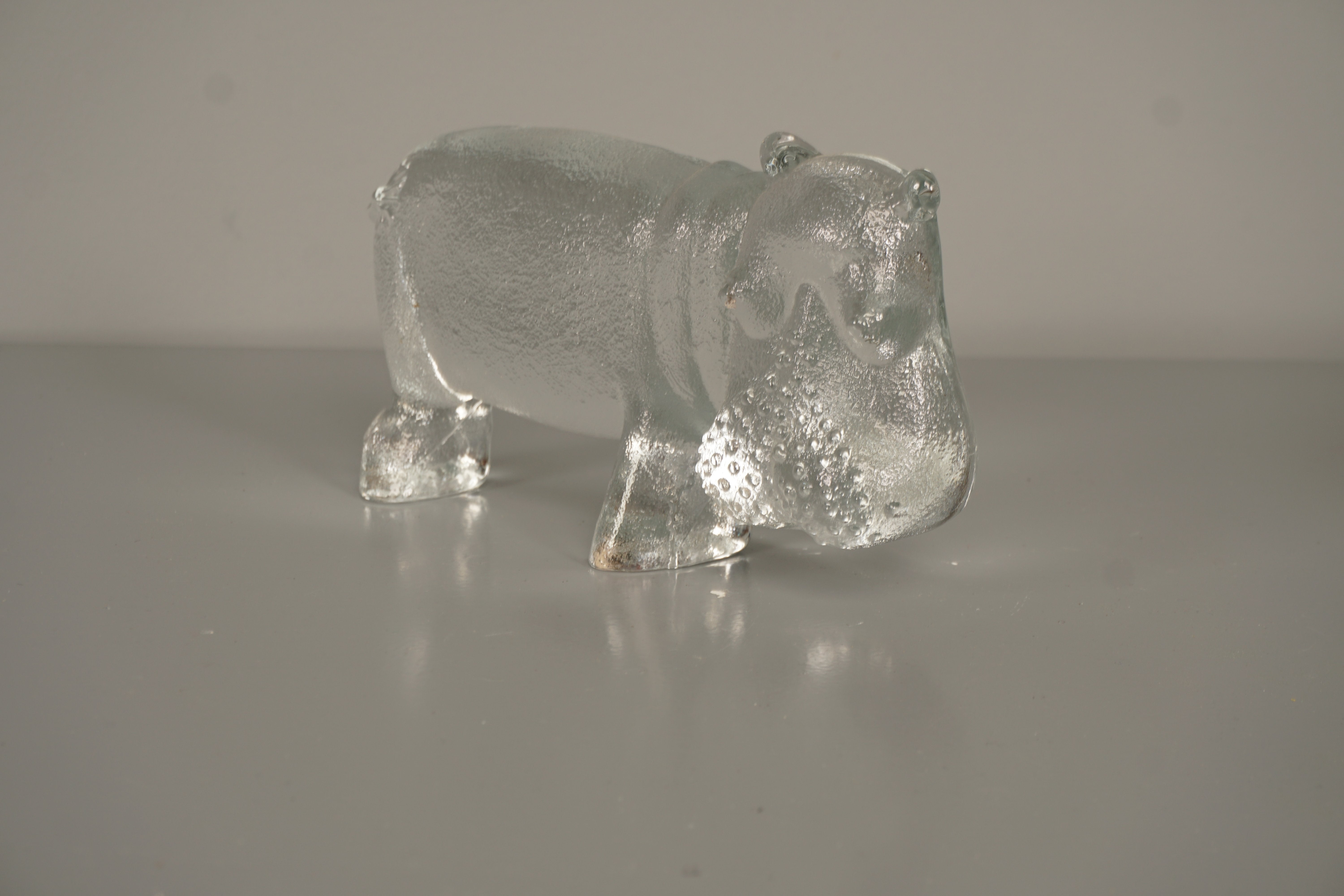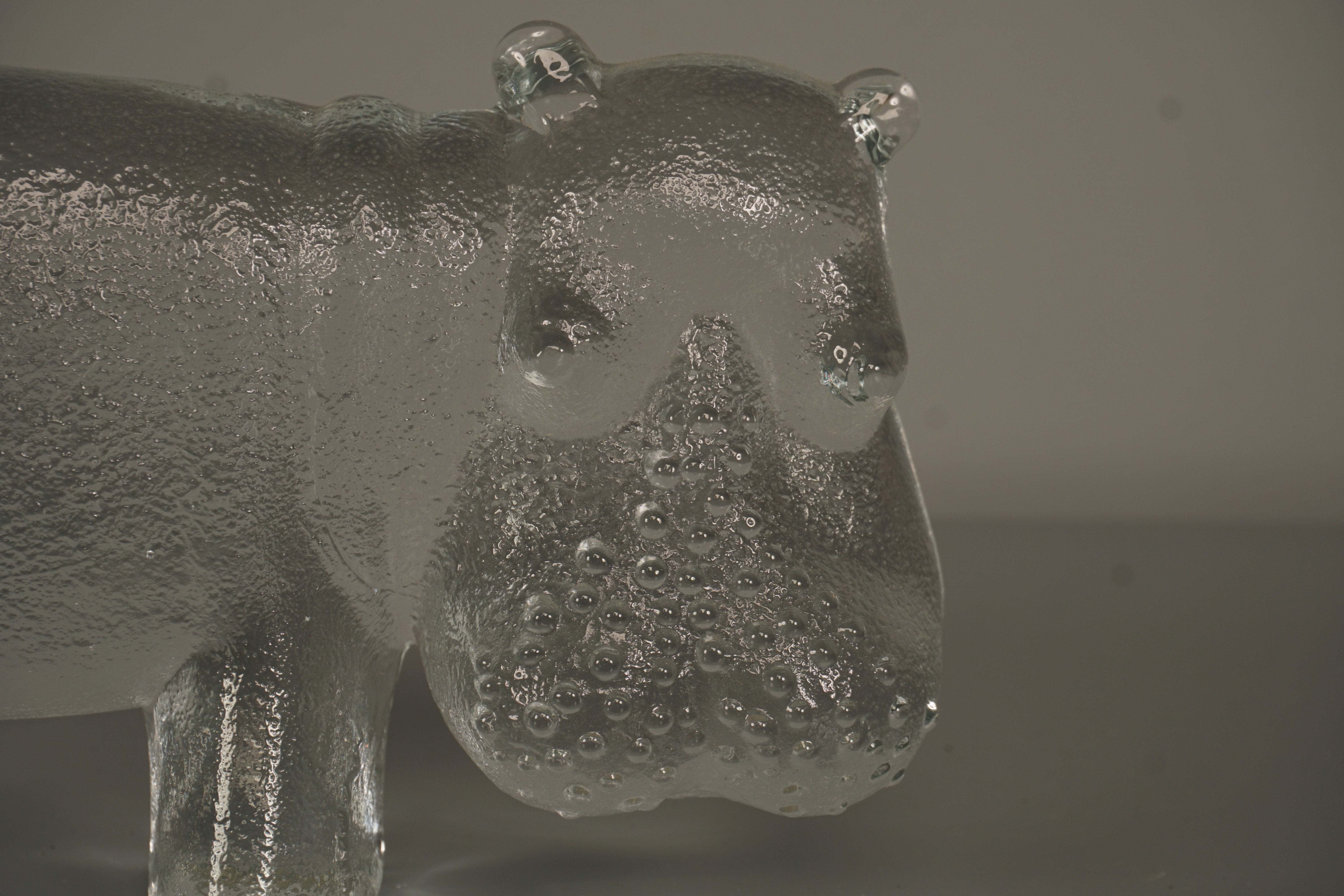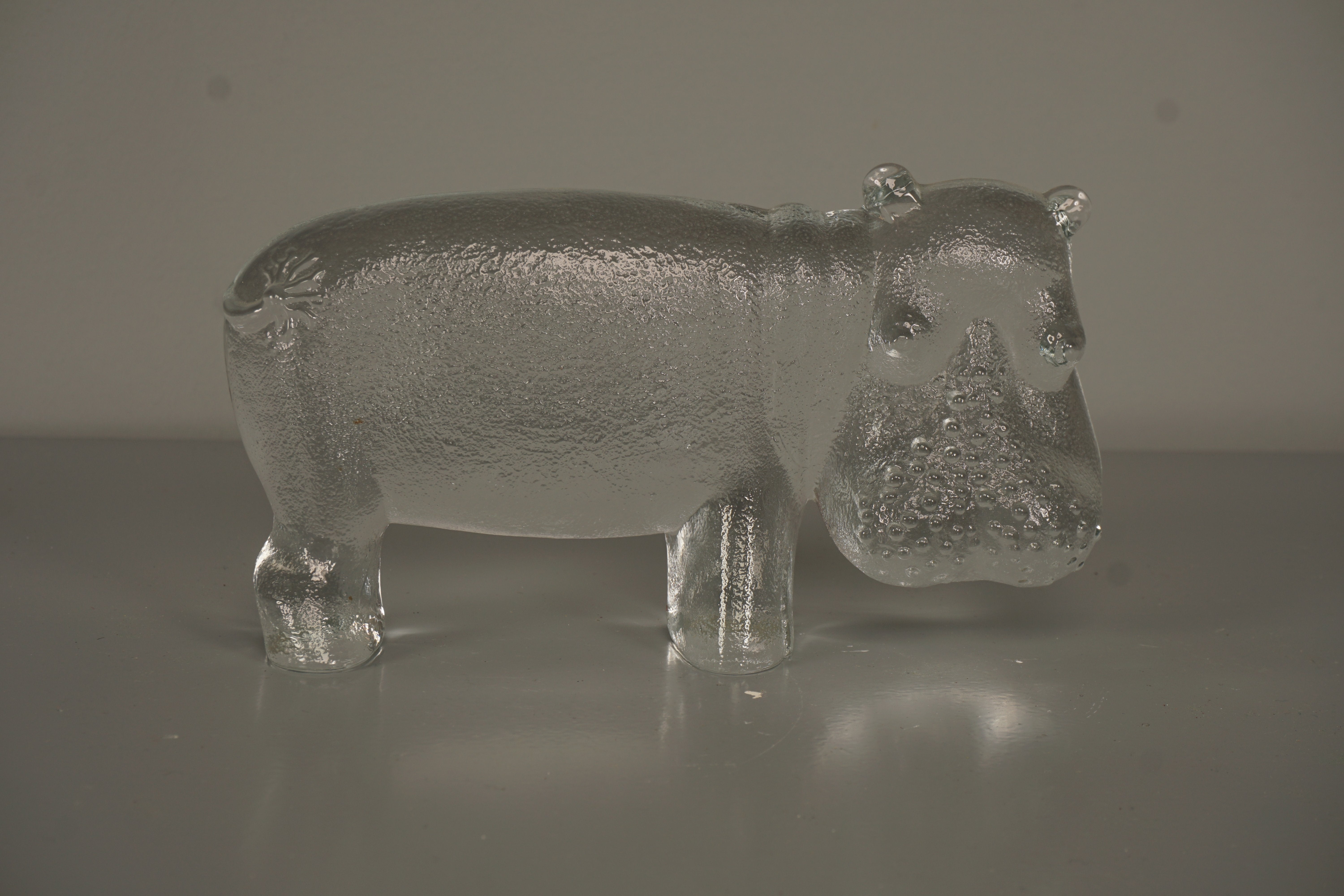 Kosta Boda Bertil Vallien Decorative Sculpture Zoo Series Hippopotamus 70s Clear Glass