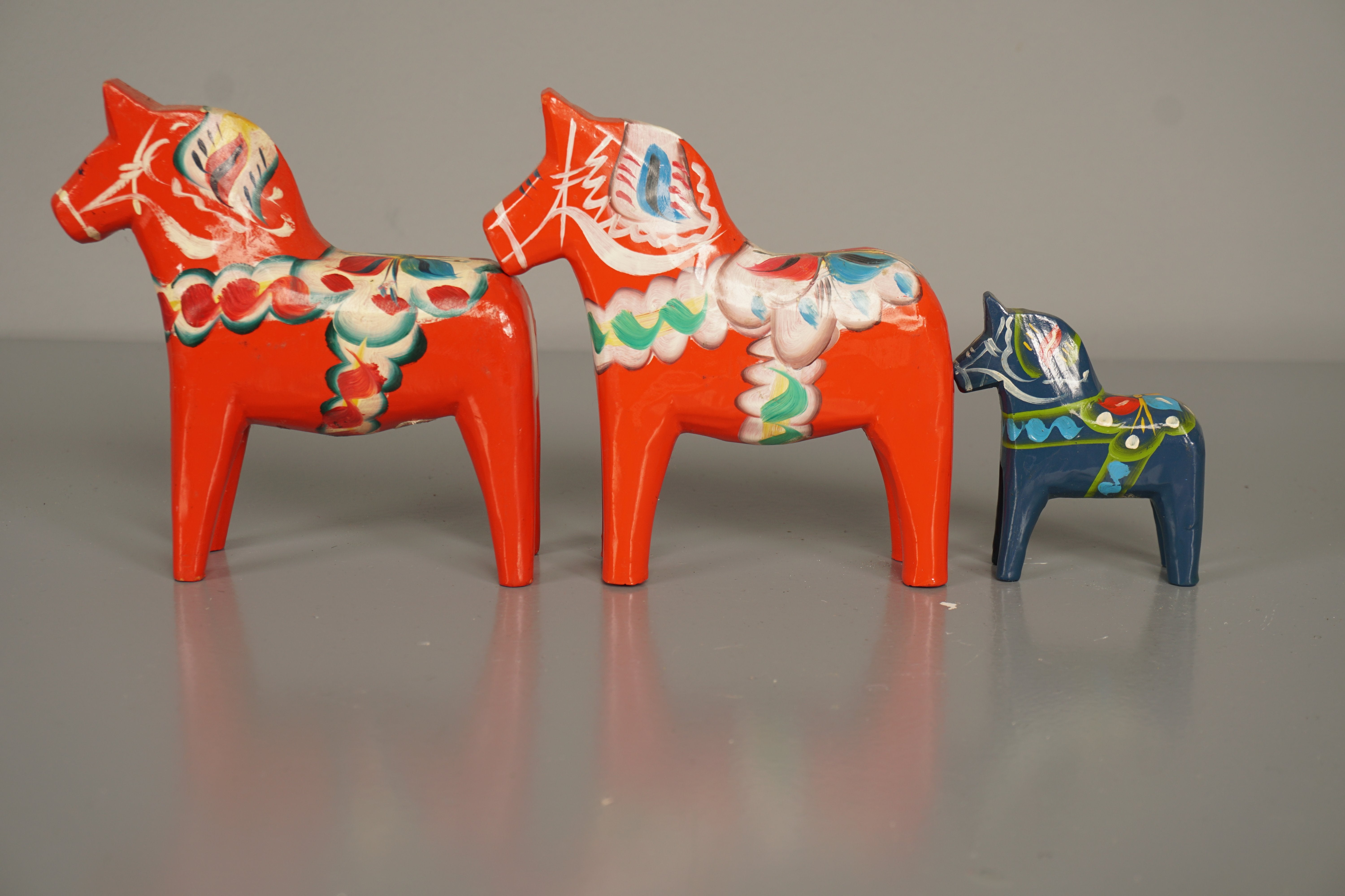The figures are adorned with typical patterns and symbolize luck and Swedish culture. This set of three horses is a wonderful gift or collector's item for lovers of Scandinavian art.