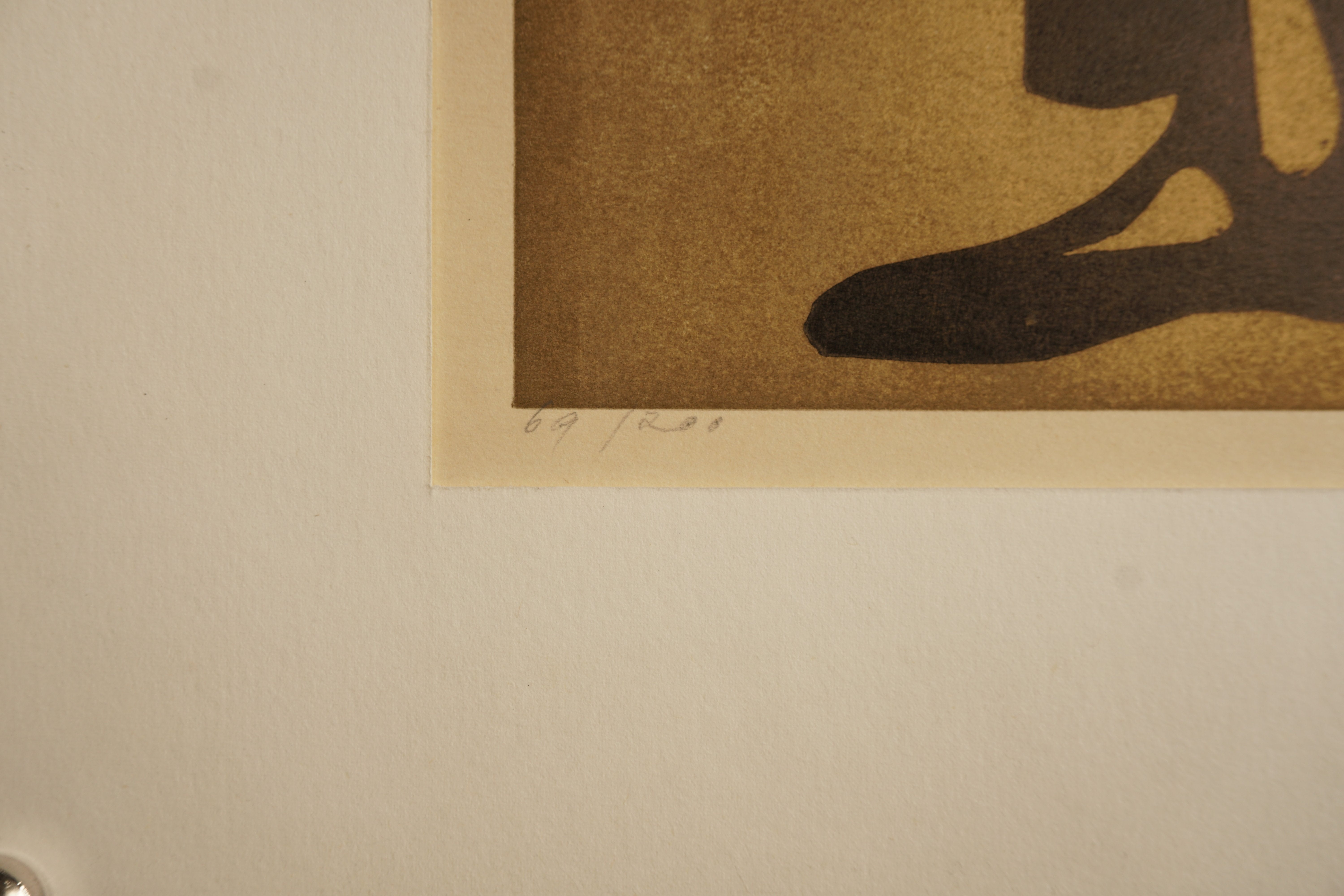 This signed and numbered artwork (69/200) is a must-have for mid-century modern design enthusiasts. The blend of brown and black adds a timeless elegance to the print.