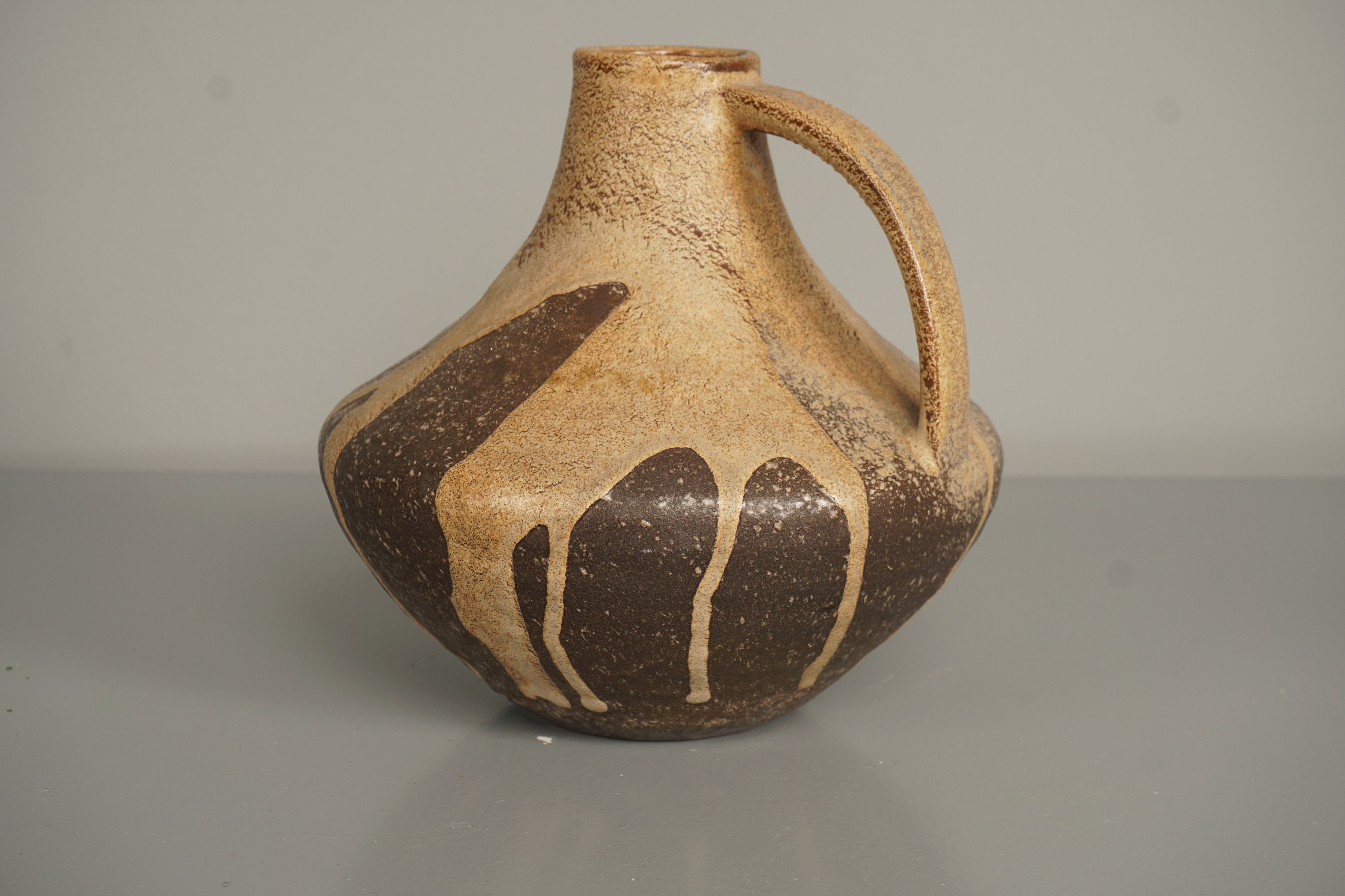 This vintage handle vase from the 1960s embodies the iconic Fat Lava style of West German Pottery. Crafted from ceramic, it showcases the characteristic midcentury aesthetic, making it a true collector's item.