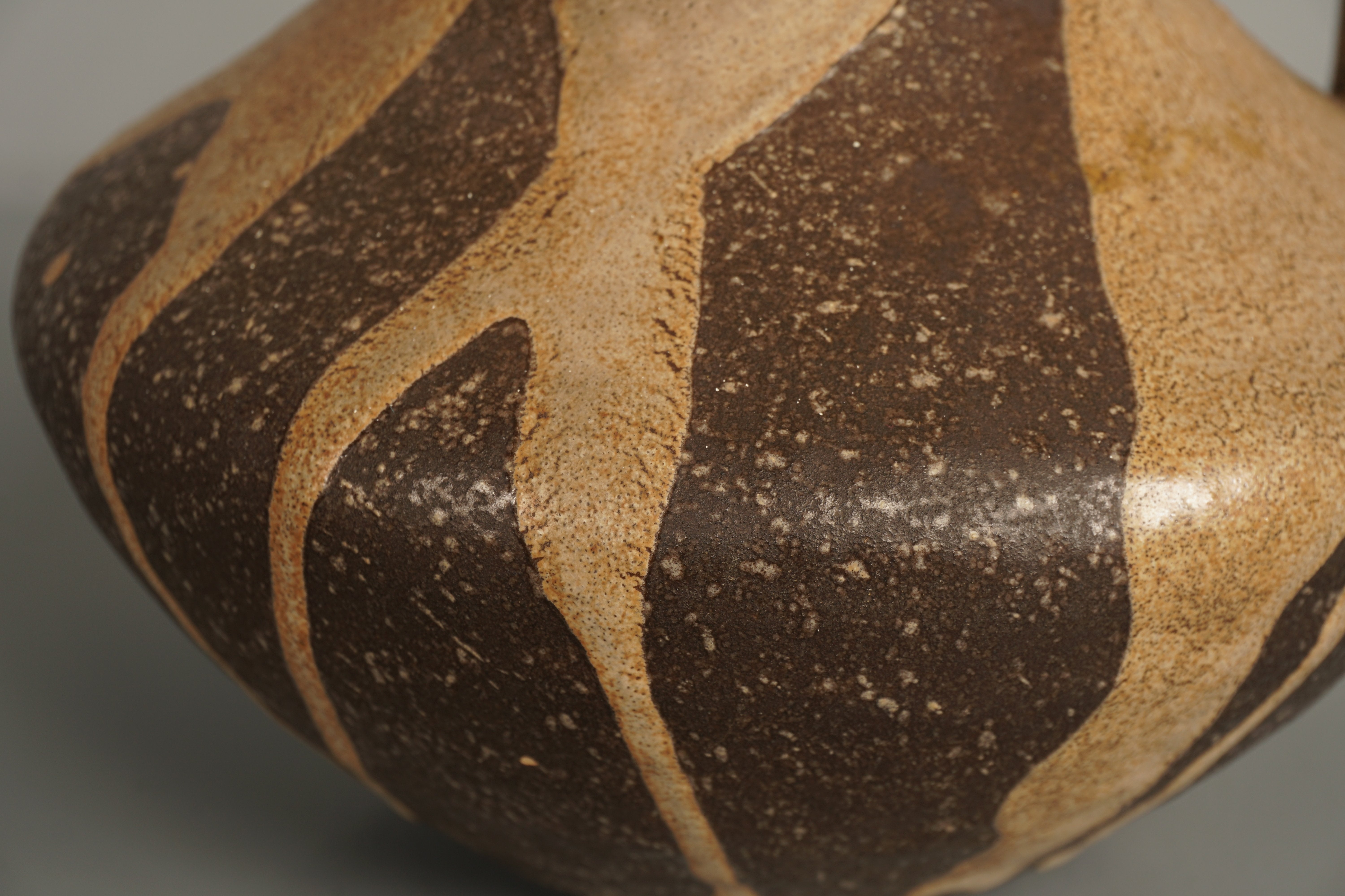 The vase features tan and dark brown tones, perfectly capturing the charm of the era. Ideal as a decorative piece or for floral arrangements.