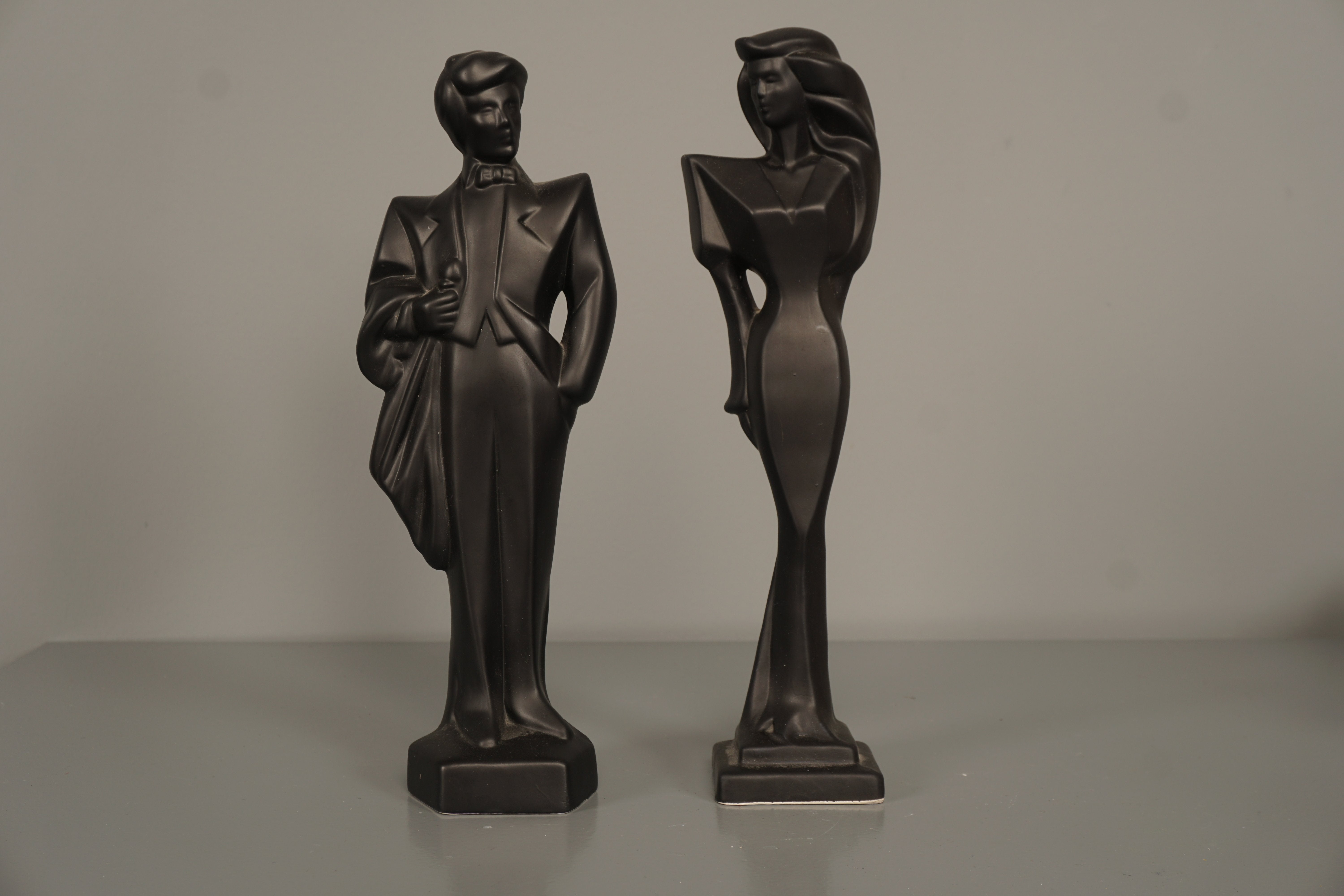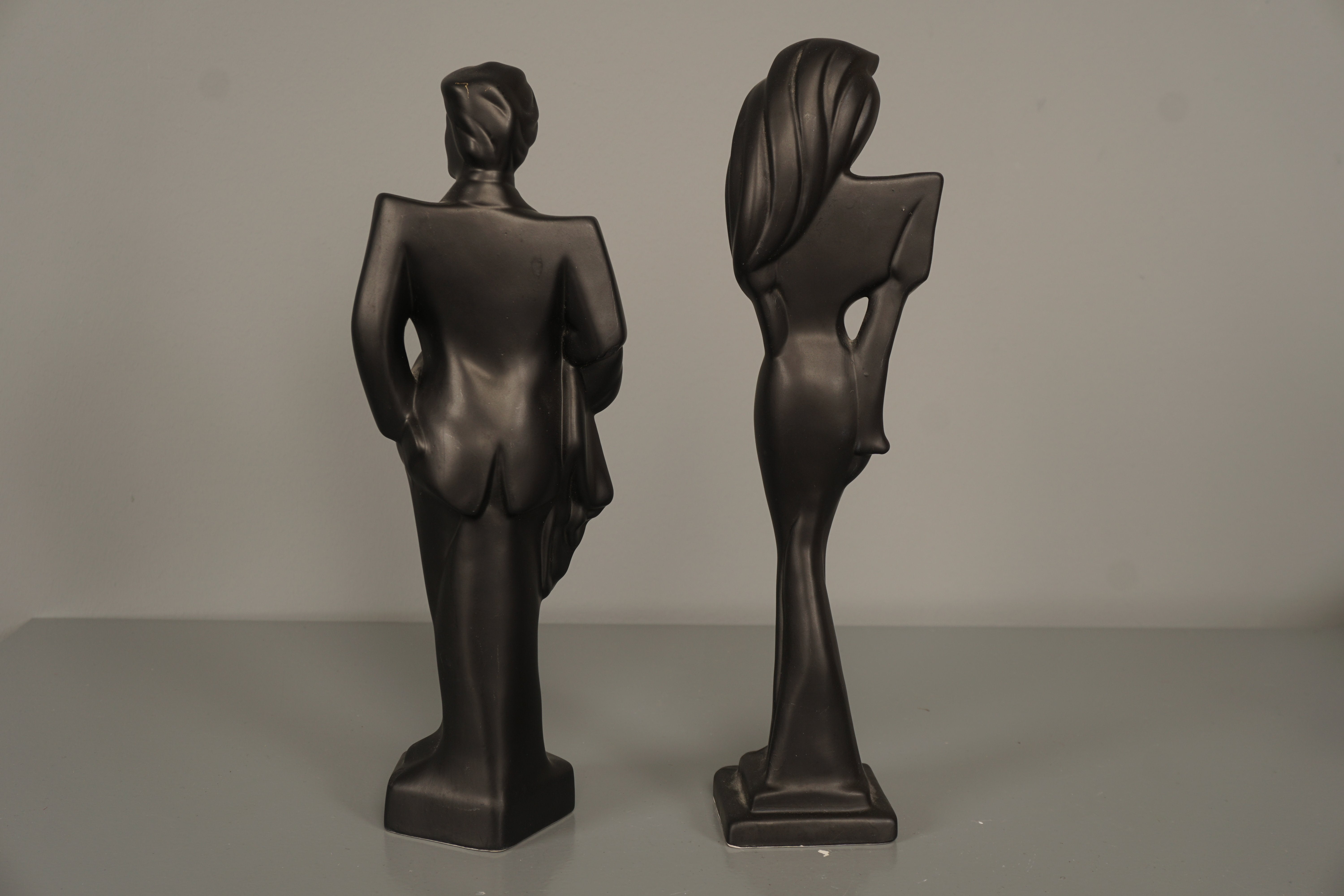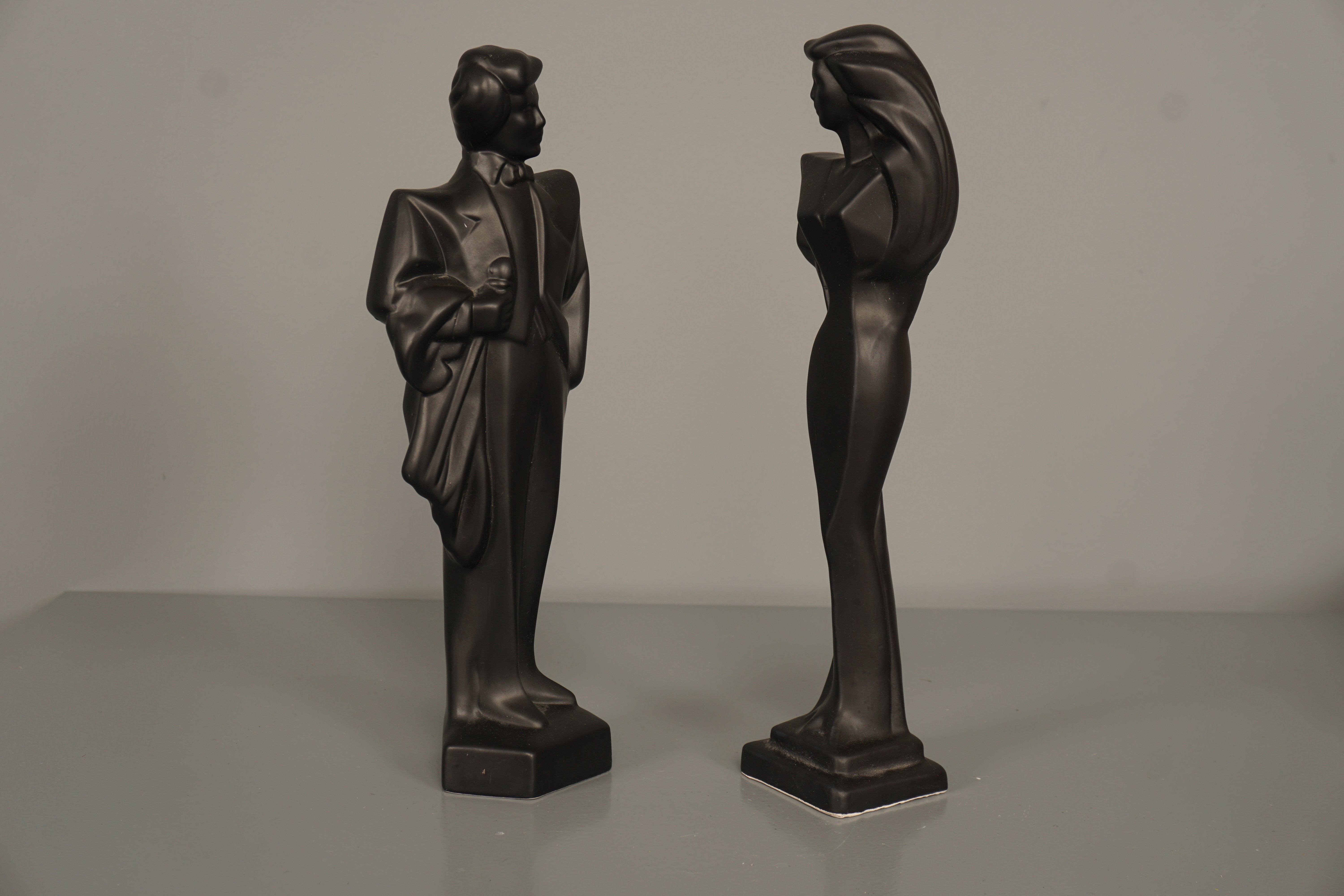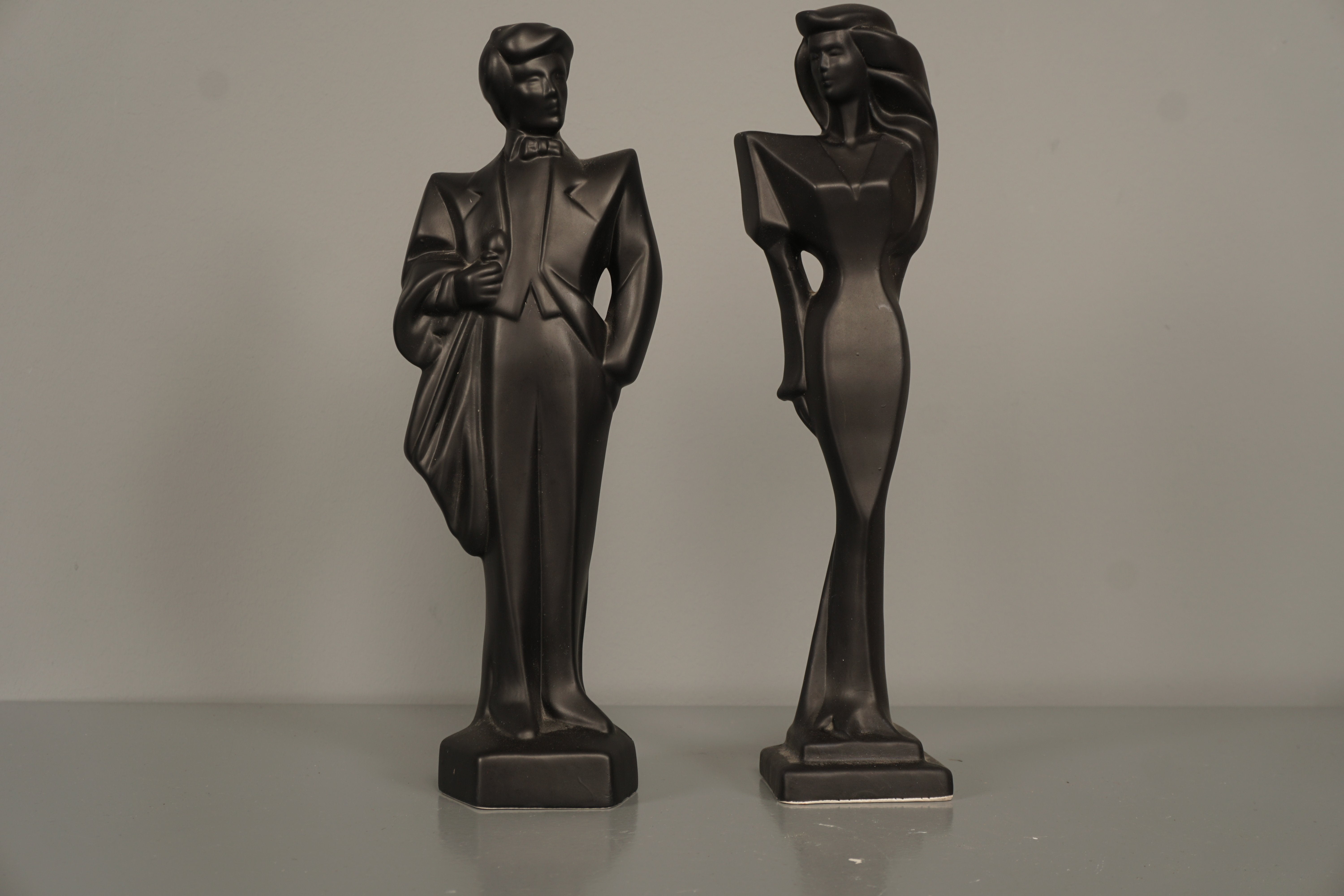 Vintage Mannequin Pair Man and Woman Figurine 80s Ceramic Black White