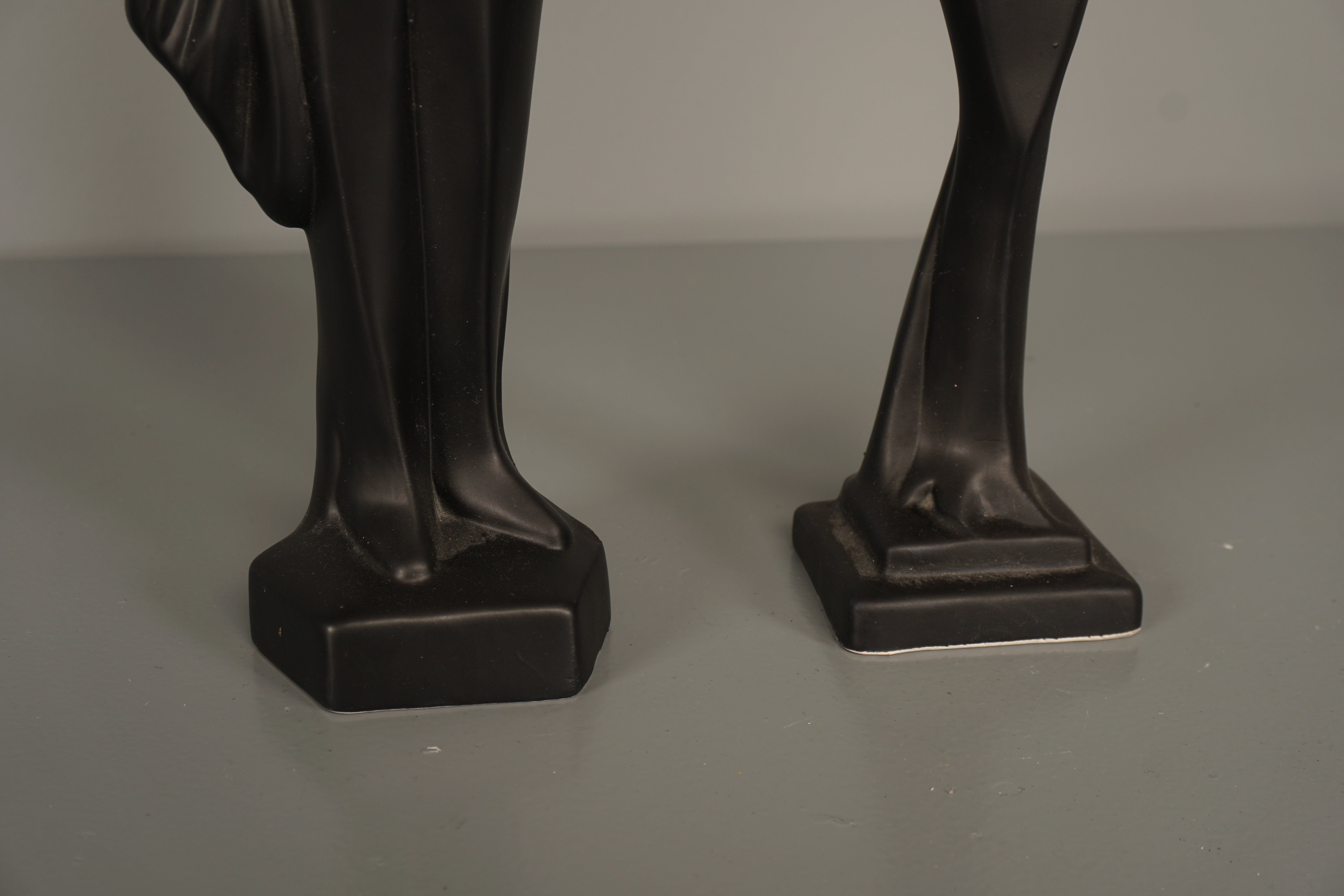 Step into the postmodern era with this vintage mannequin pair from the 1980s. These ceramic art figurines embody the classic design flair of the time.