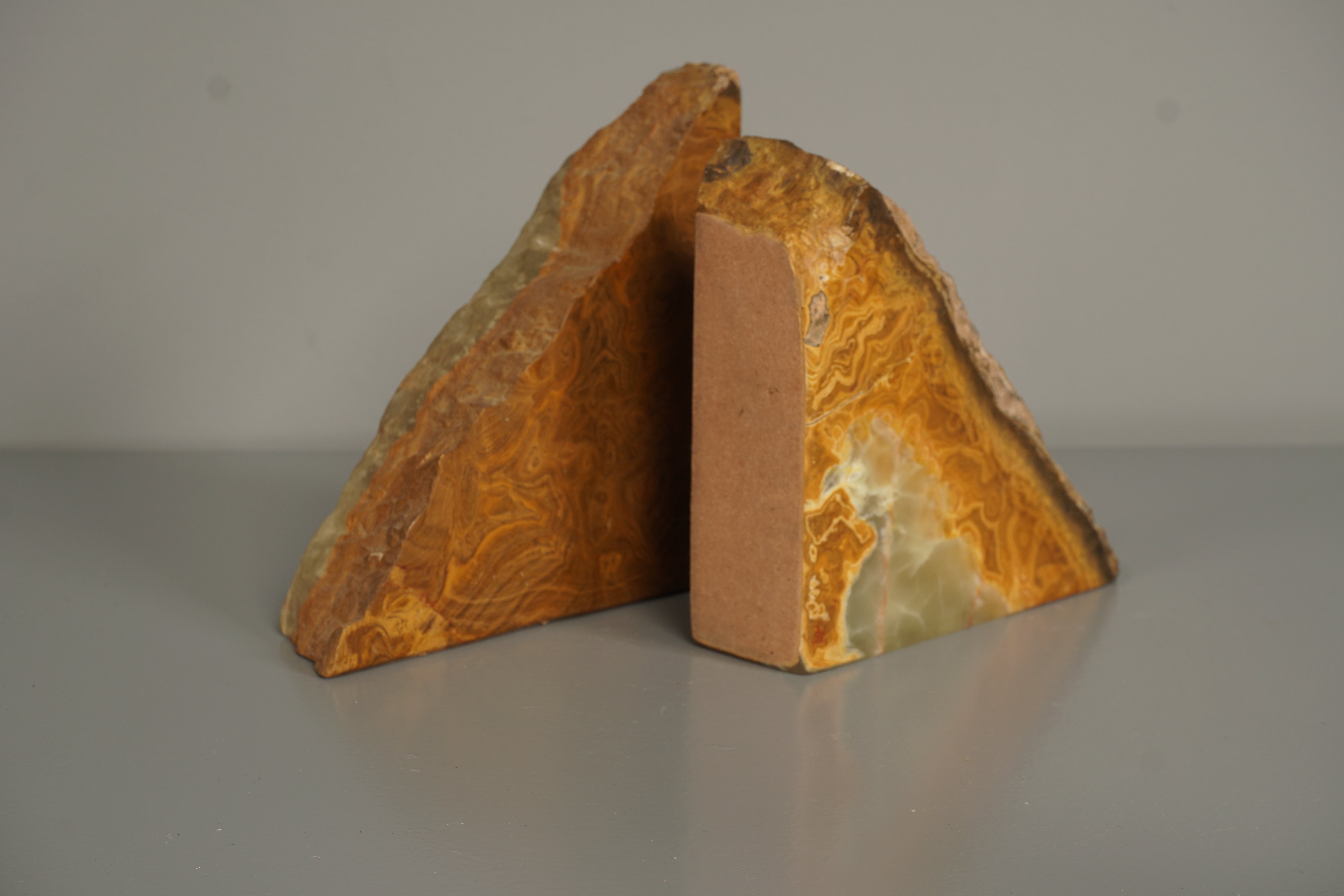 Vintage Pair Agate Bookends Polished 70s Brown Stone