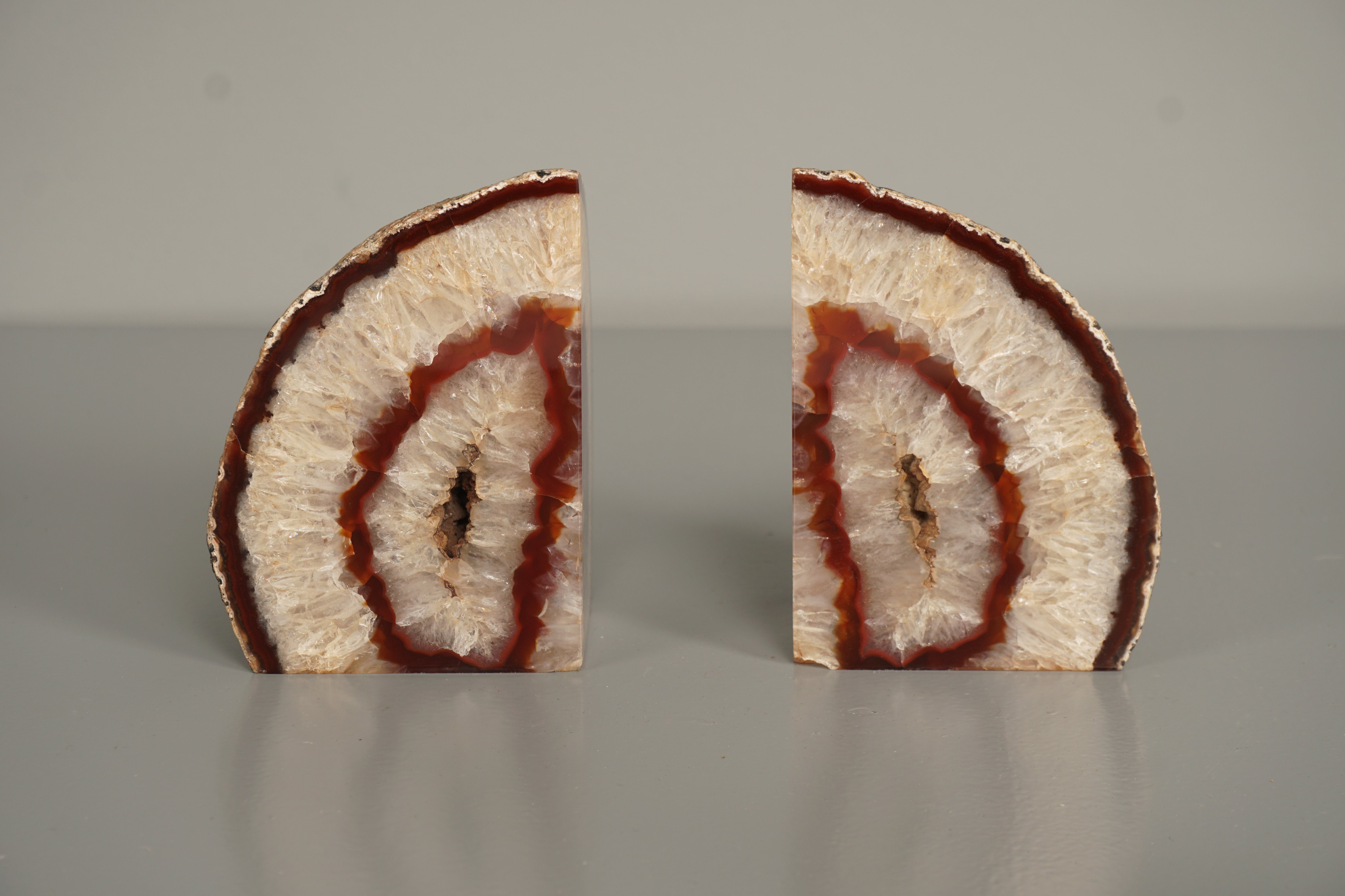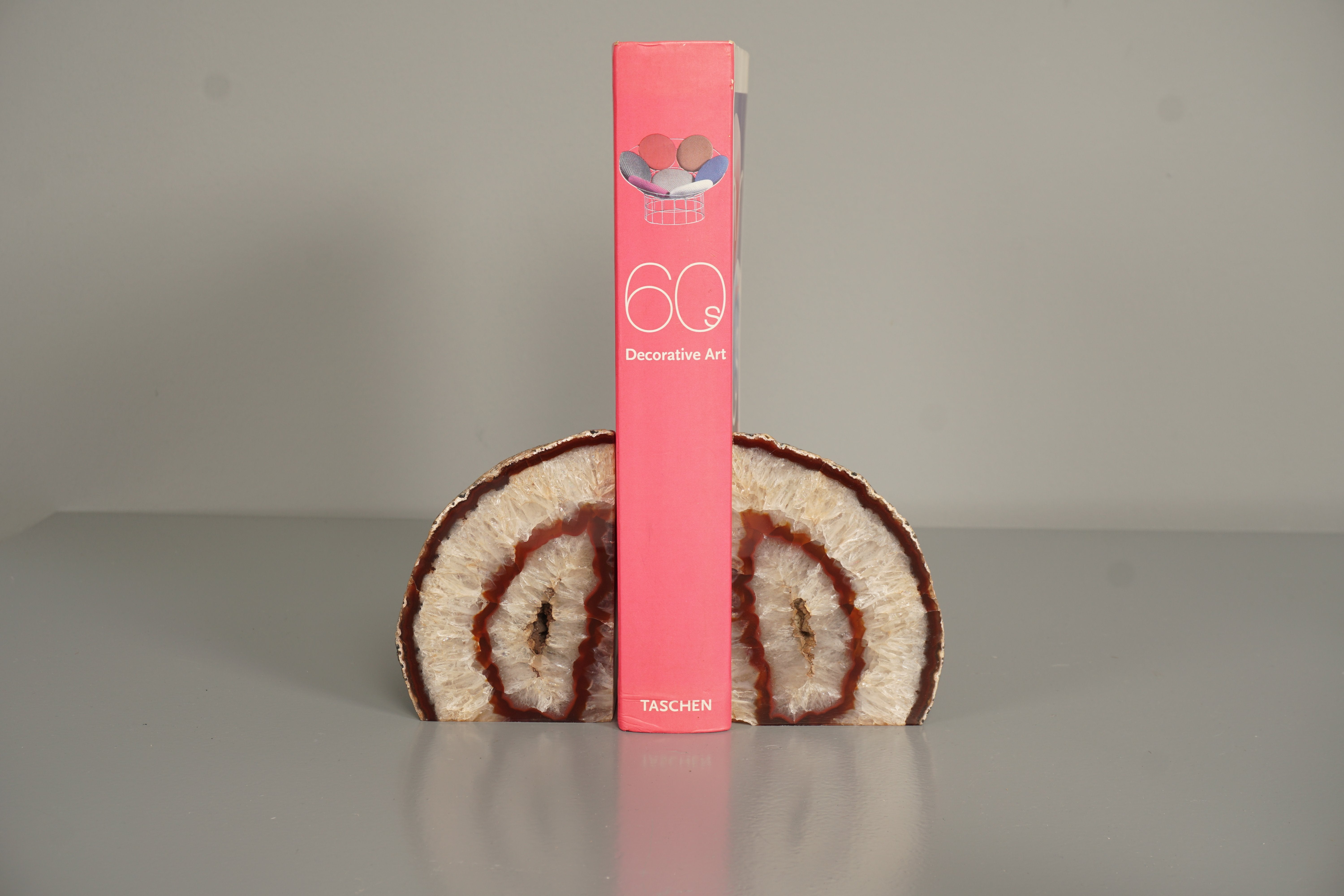 These stunning bookends from the 1970s are a true highlight for your collection. Made from polished agate geodes, they combine natural beauty with contemporary style.
