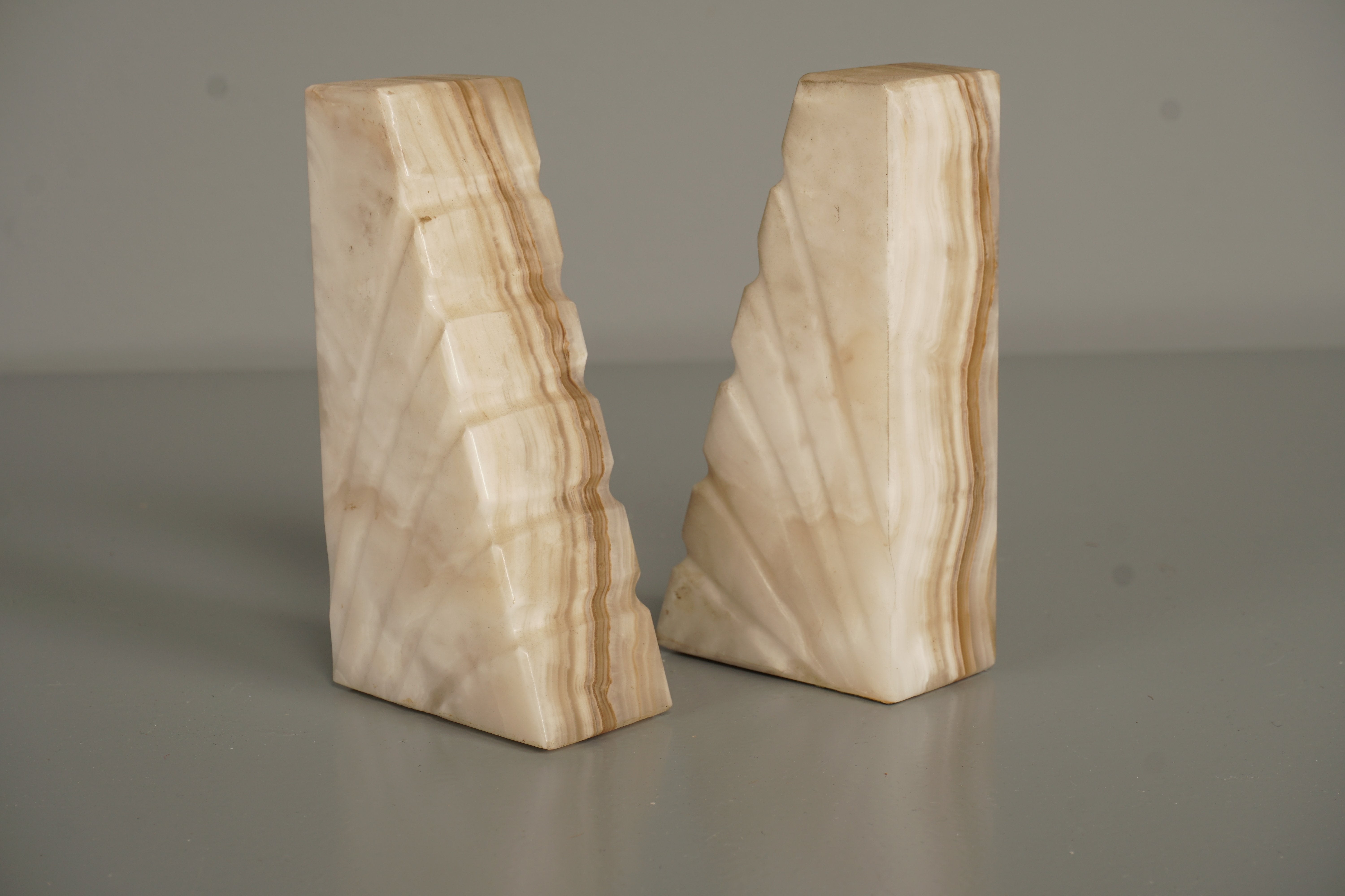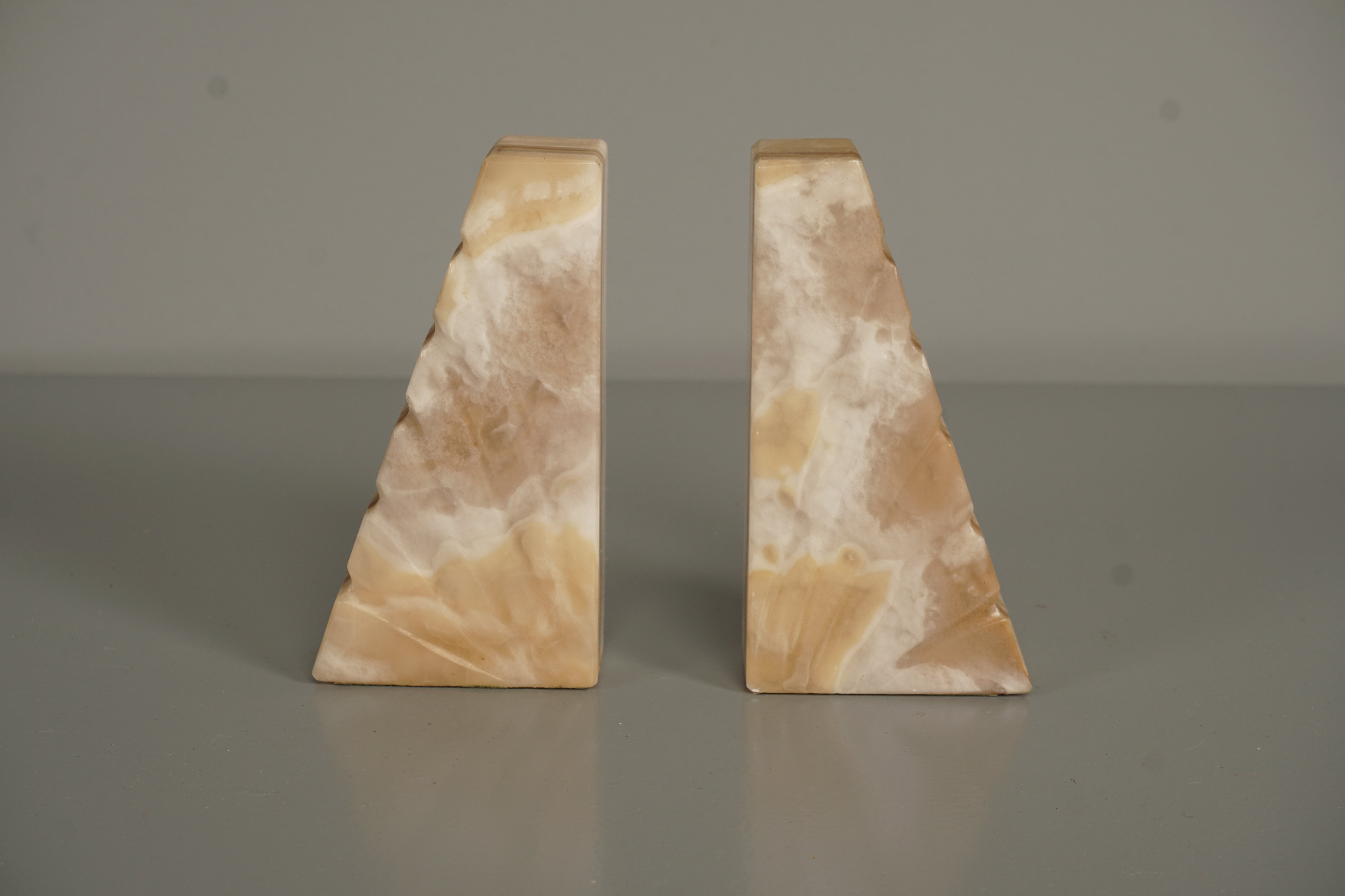 Vintage Pair of Onyx Bookends 1970s Beige and Light Green