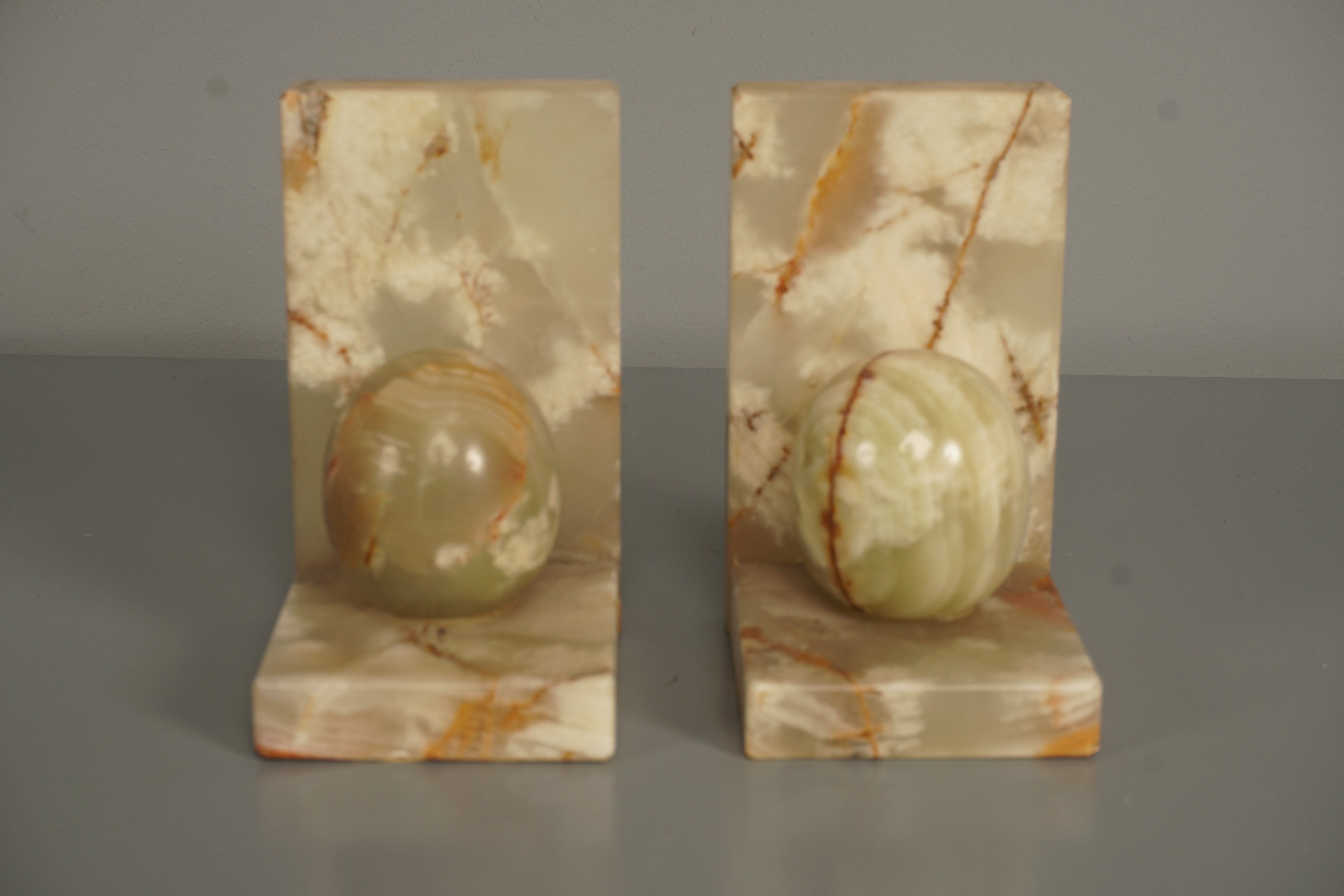 Vintage Pair Onyx Bookends 1970s Beige Pink Marble